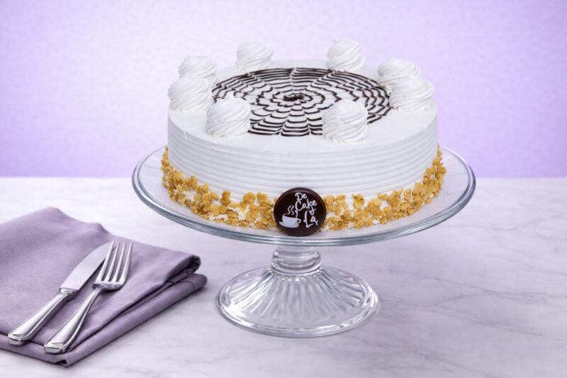 Moist cake layered with rich butterscotch cream and crunchy praline, a sweet and indulgent classic.