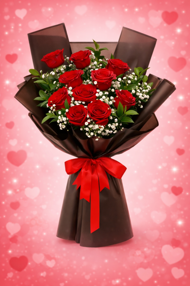 Express your love with this elegant 10 Red Rose Bouquet, a timeless symbol of romance and passion. Handpicked fresh red roses are beautifully arranged to convey deep affection and heartfelt emotions. Perfect for Valentine?s Day, this bouquet speaks the language of love and makes every moment unforgettable.