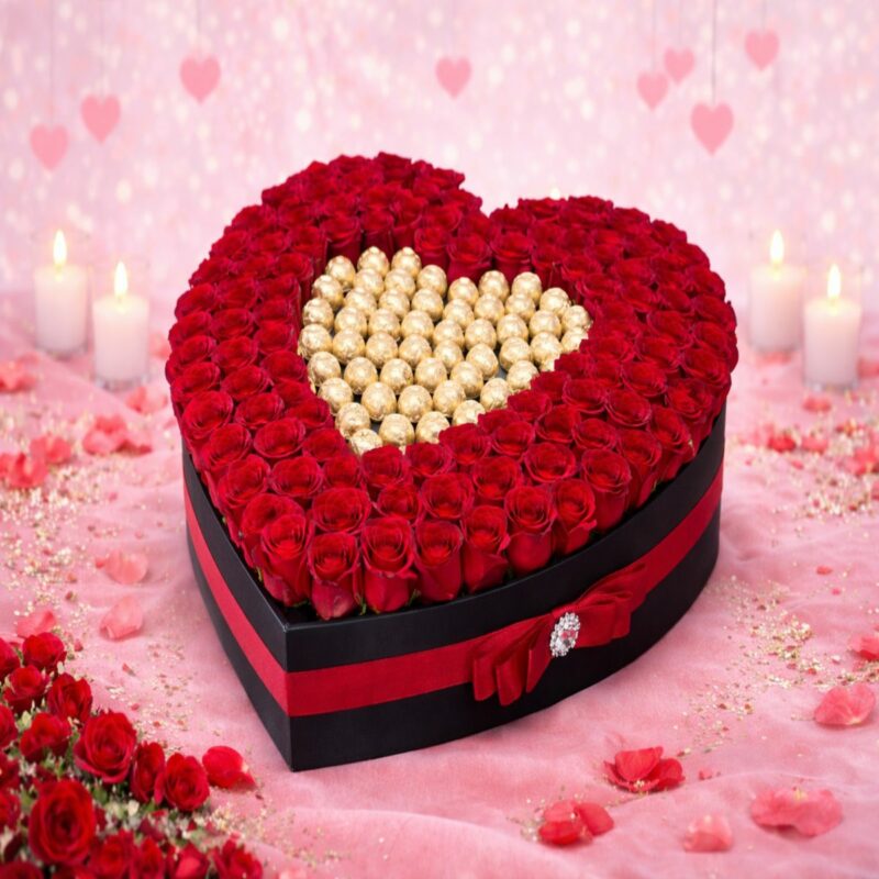 An elegant premium red roses box arranged for Valentine?s Day ? a romantic gift that makes a strong love-themed impression. These ?royale? rose boxes are usually designed to be luxurious and visually striking, often promoted around Valentine?s Day and other major romantic occasions.